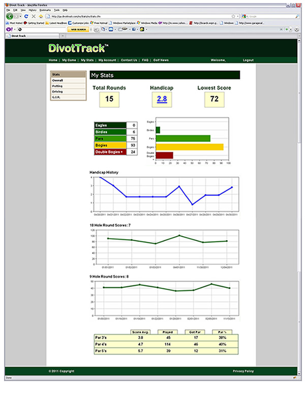 Through the use of your own statistics from rounds played and the powerful tools on the DivotTrack website, you will be